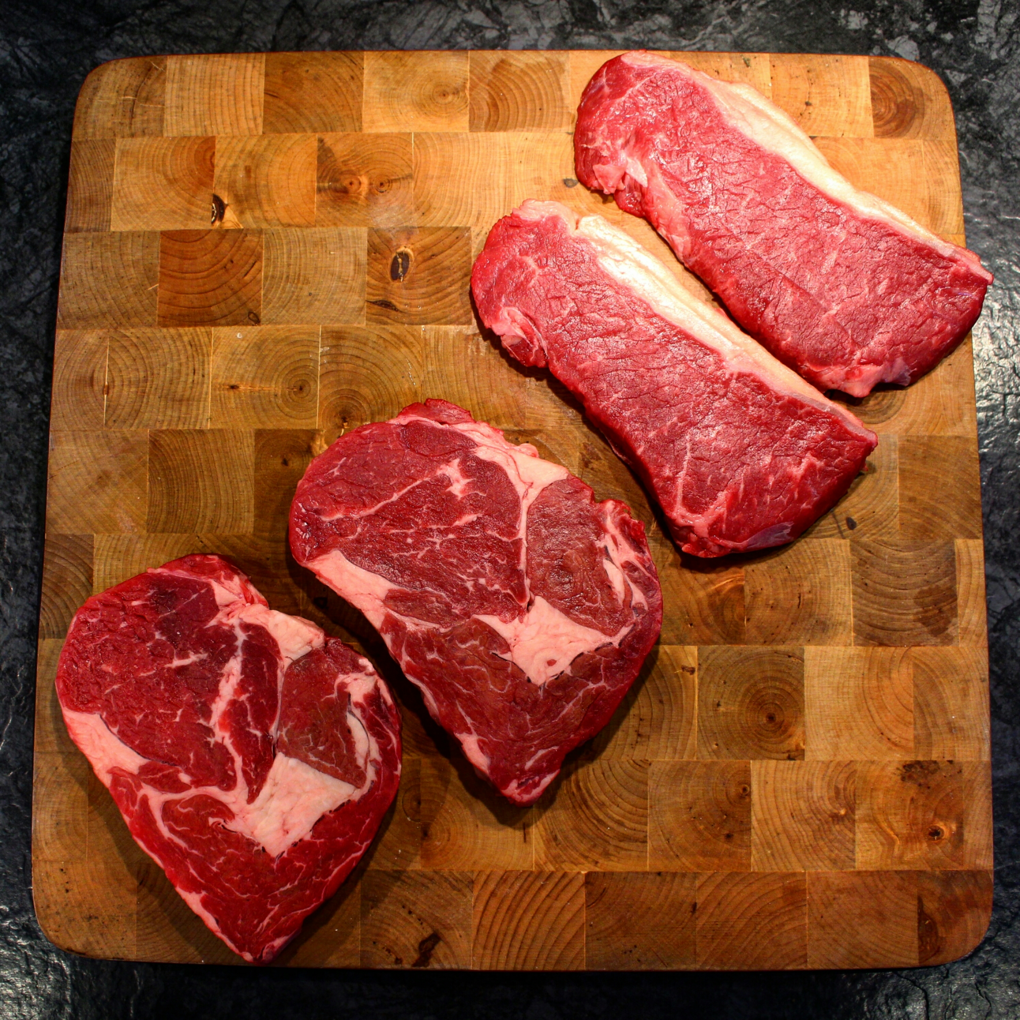 Entrecote och ryggbiff. Köttet penslat med olivolja och sedan grovt salt och peppar. Mer behövs inte. Grillad fänkål och färsk ananas som legat i en sötstark marinad med bland annat lönnsirap, flytande honung, chilisås och lite ketchup. Grillade skogschampinjoner med rödlök. En chilimajonnäs gjord på hellmans majonnäs och srirachasås, dijonsenap och ketchup. Lite hemmagjort kryddsmör. Och så lite pommes.