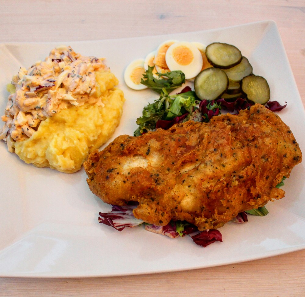 Jag är så jäkla svag för sånt här. Galet. Krispigt friterad spätta med potatismos spetsat med cheddarost. Räkröra med räkor, rödlök, ägg, majonnäs, creme fraiche, srirachasås och lite persilja. Saltgurka och lite ägg. Lite remouladsås fick bli pricken över i:et på slutet.