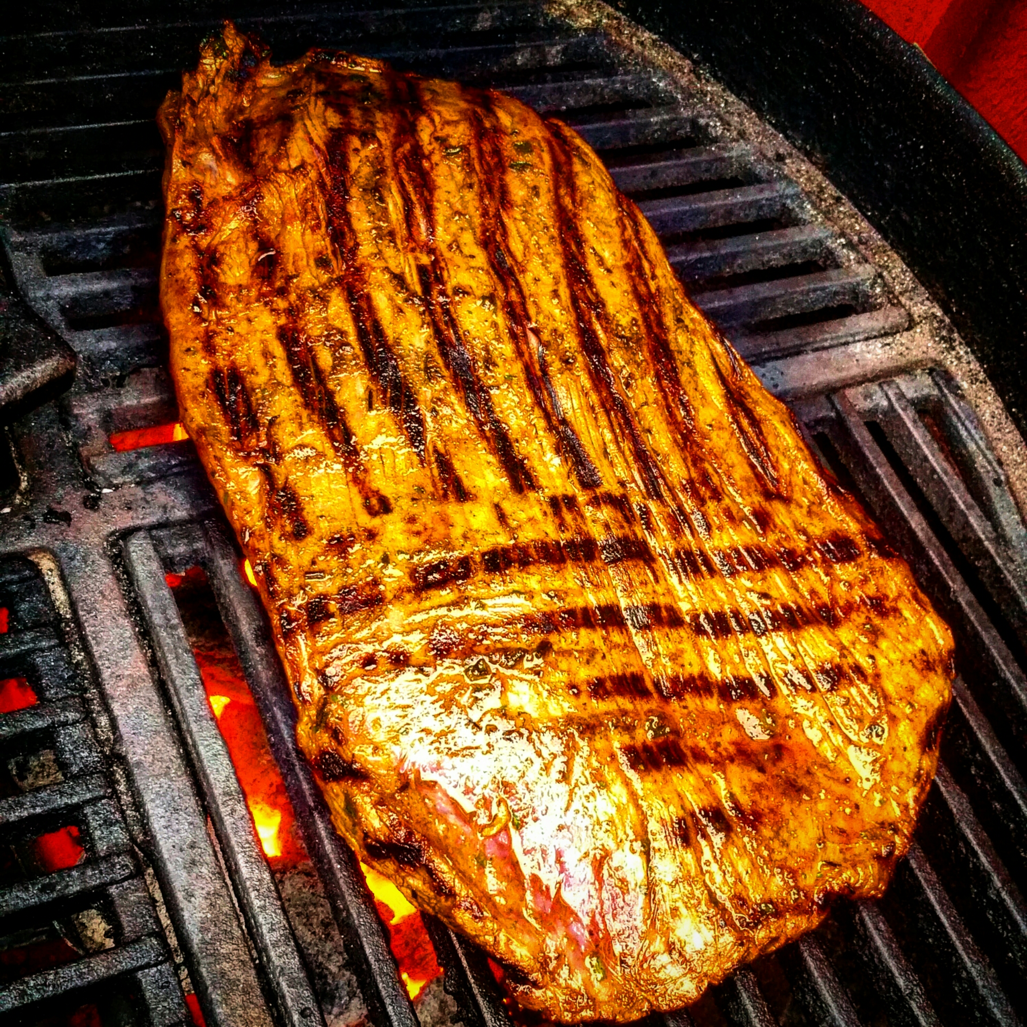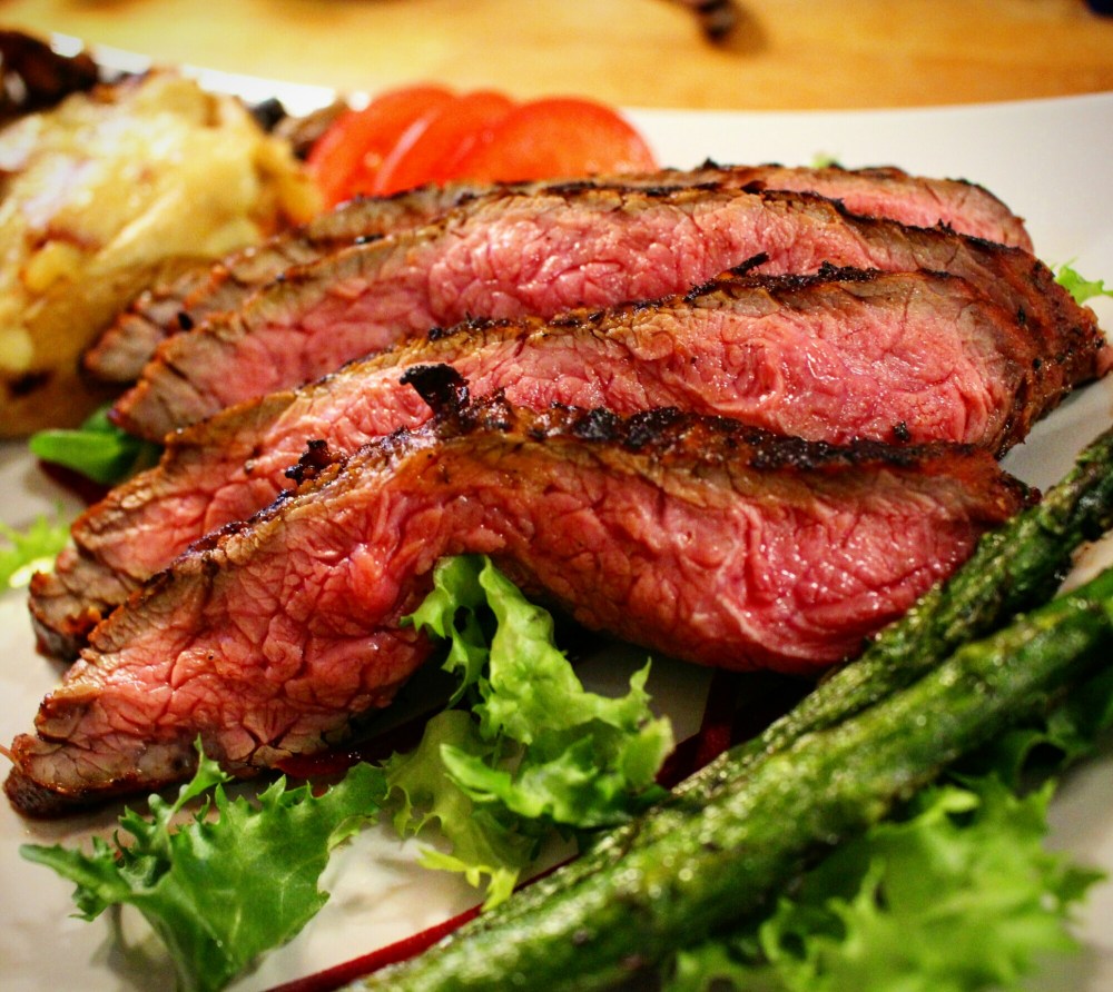 Flankstek. Attans så gott det är. Serverat med Jacksonpotatis, kantareller, champinjoner, grön sparris och aioli. Och så lite grönsallad.