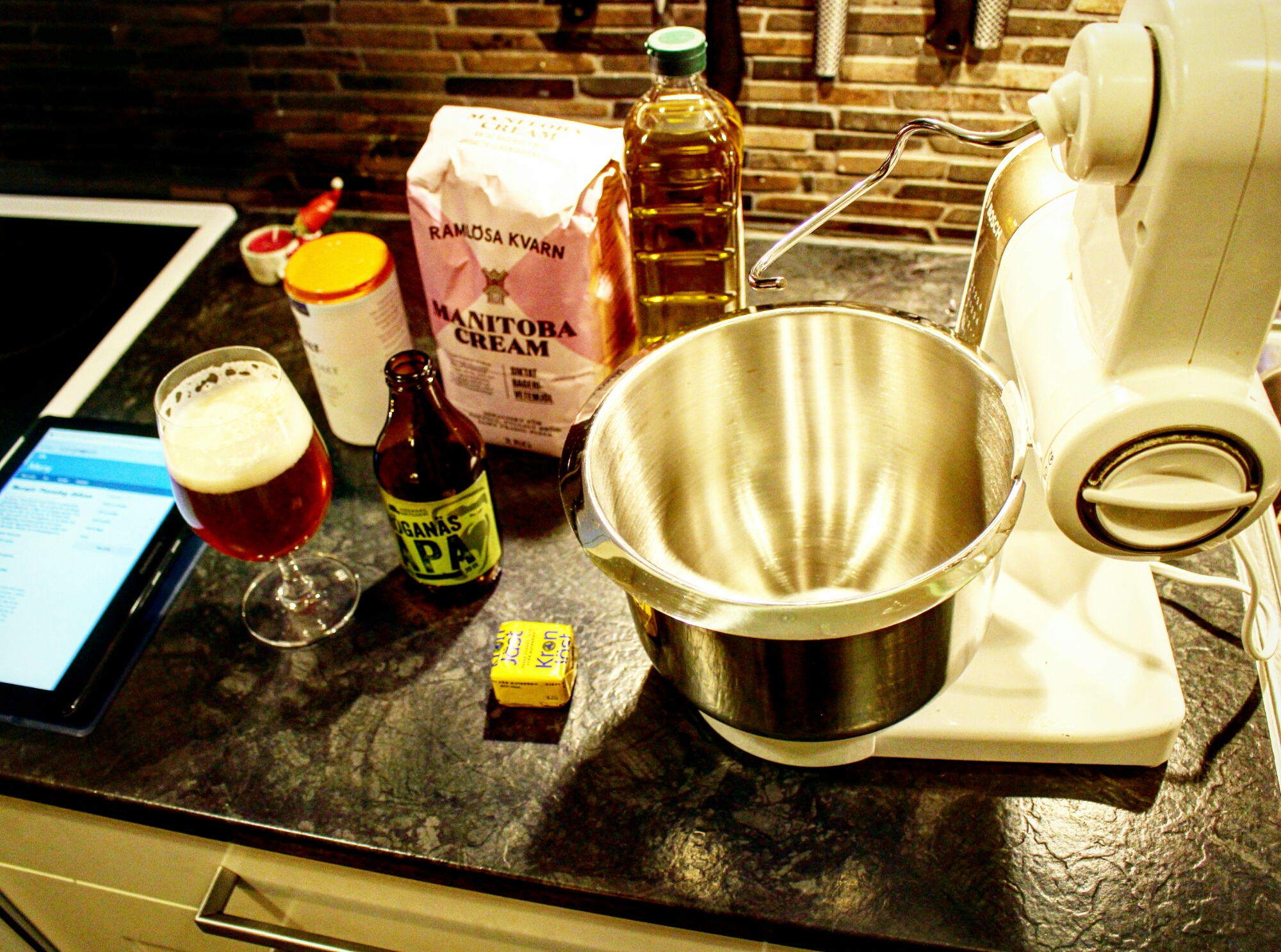 400 g (6 – 7 dl) vetemjöl (Jag valde Manitoba cream)