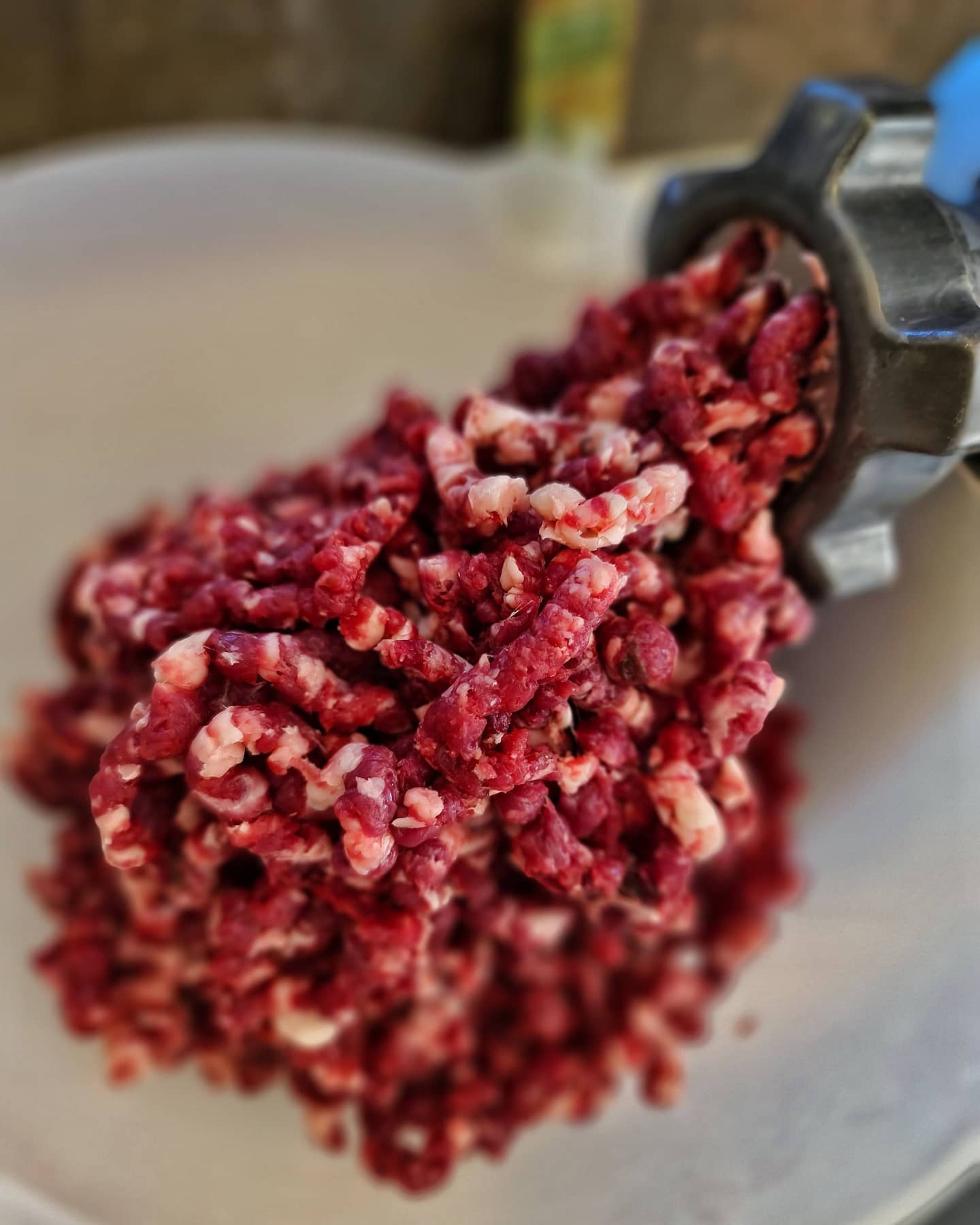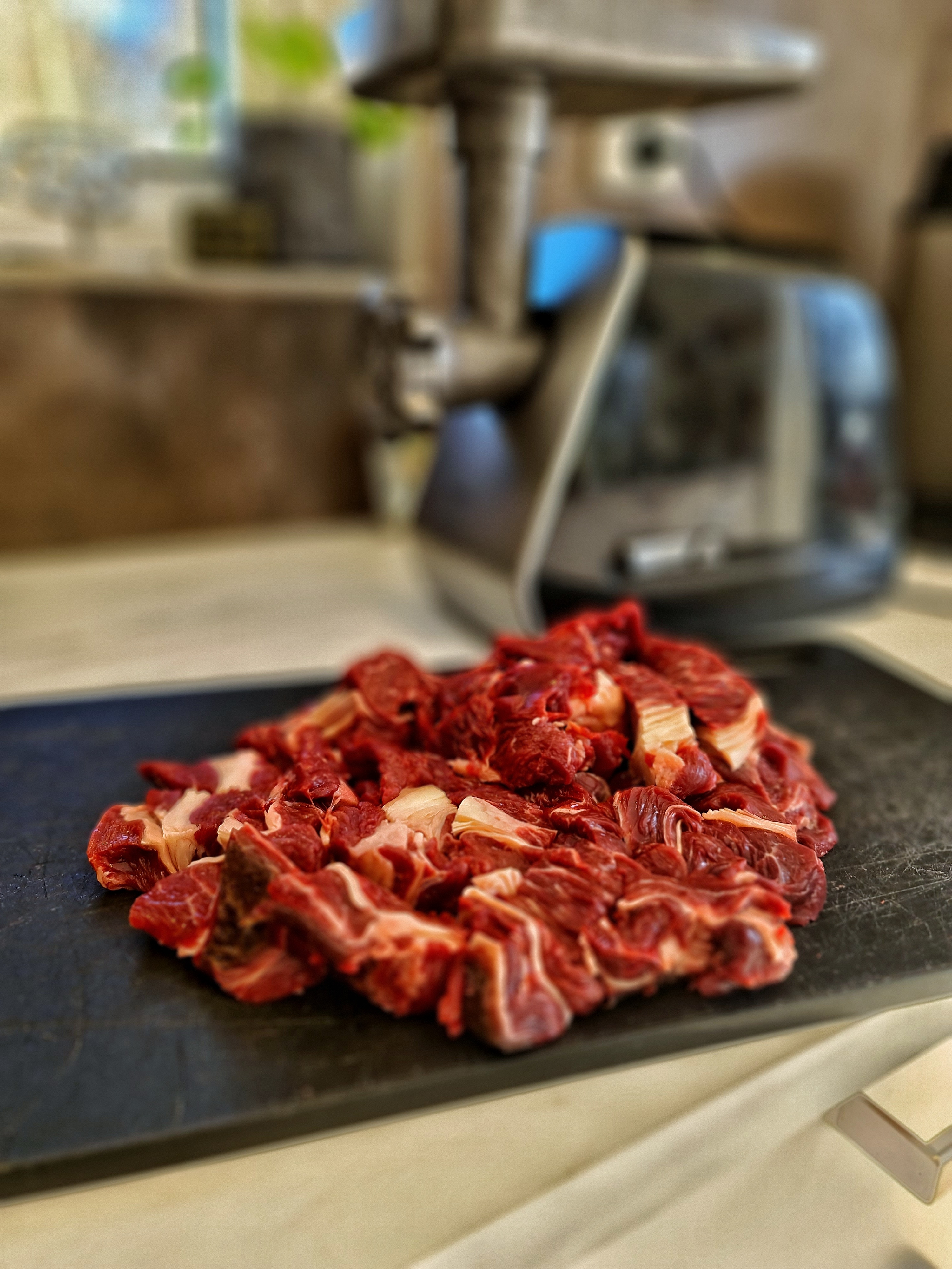 Högrev maldes på grövsta hålskivan två gånger och kryddades sedan endast med salt.