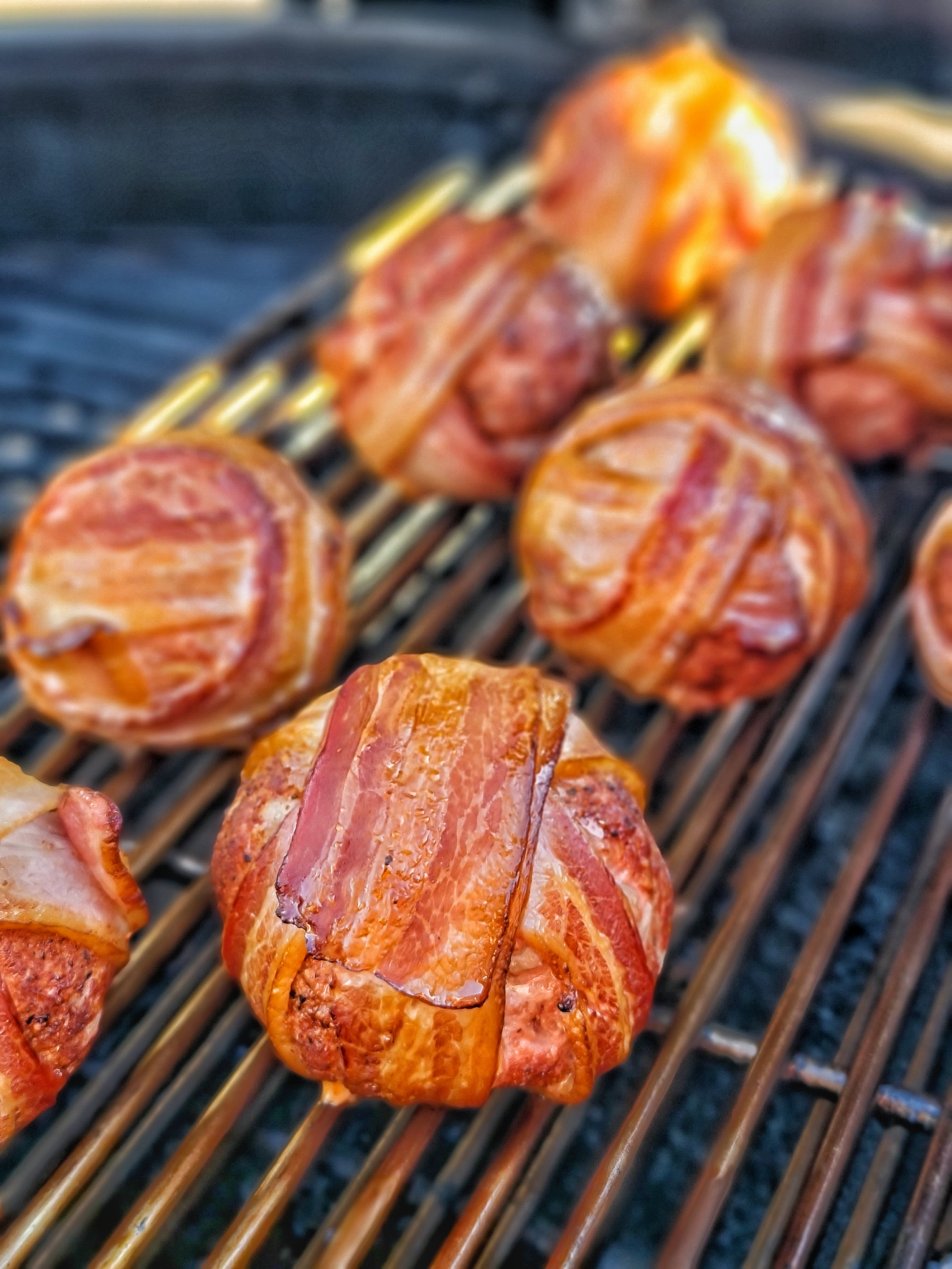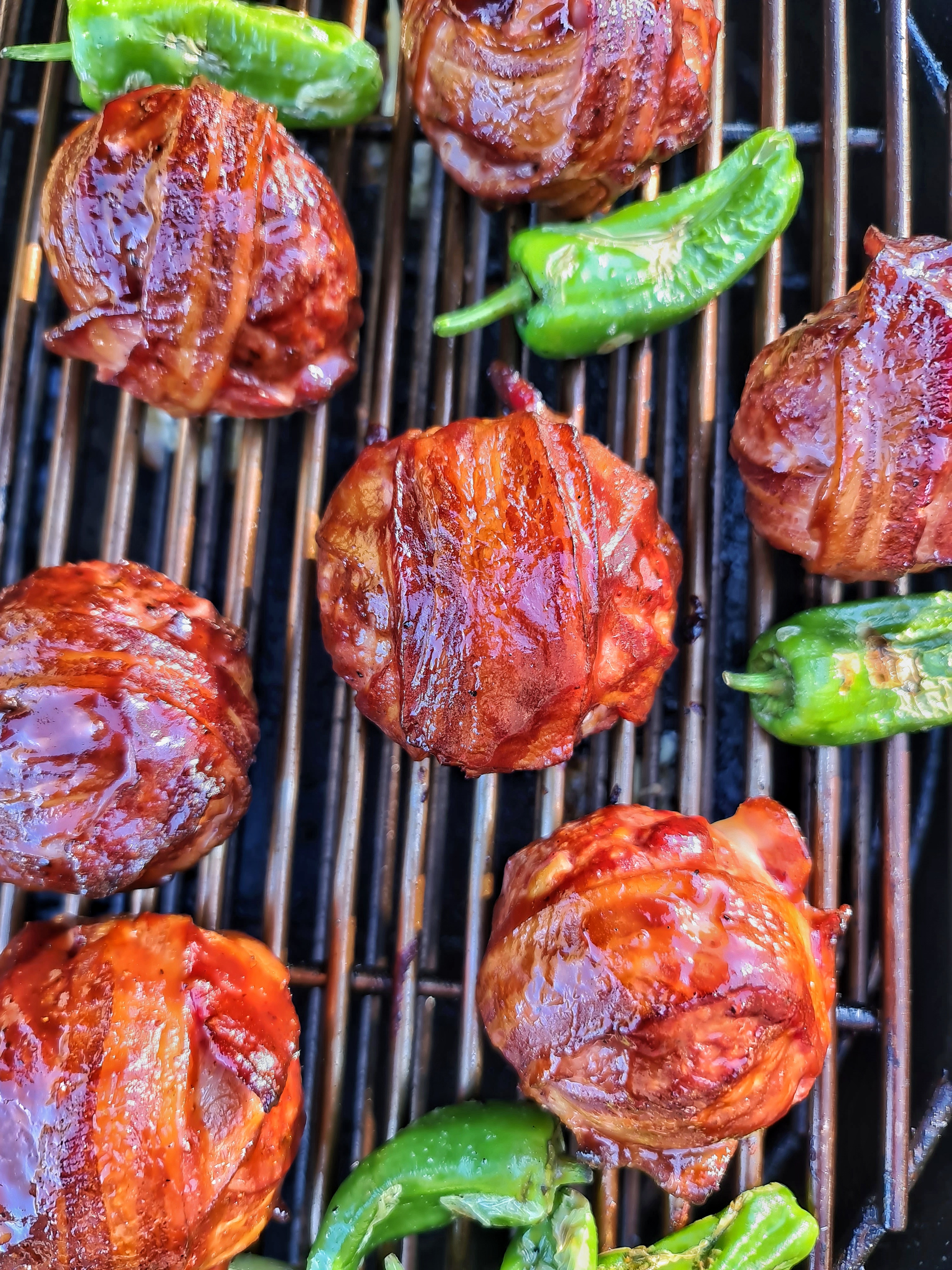 När baconet börjat dra ihop sig och få yta penslades dem med Sweet Baby Ray’s bbqsås och fick gå en stund til.
