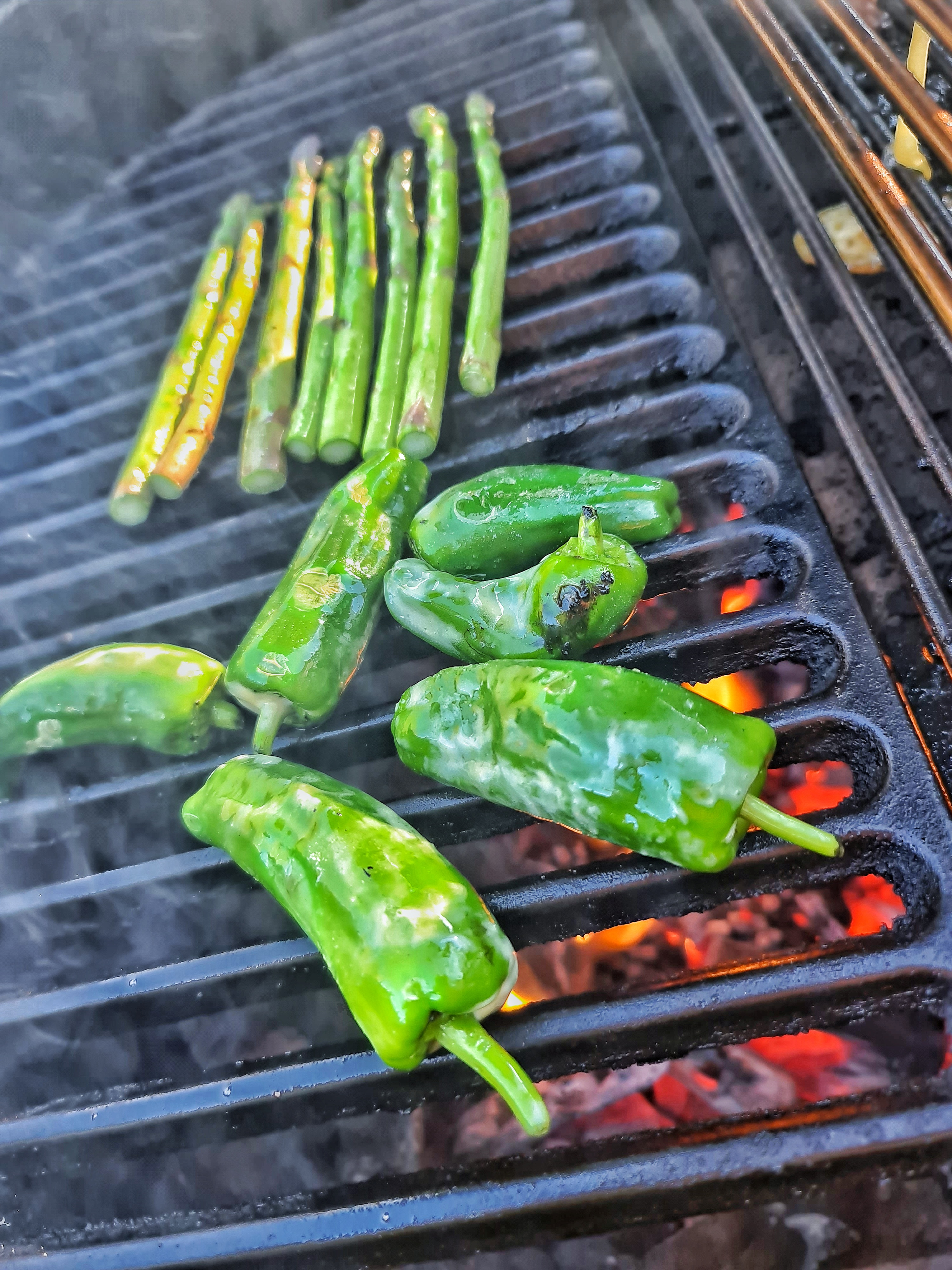 Padrones och sparris grillades och allt serverades med räfflad potatis. Satt ganska bra en onsdag som denna.