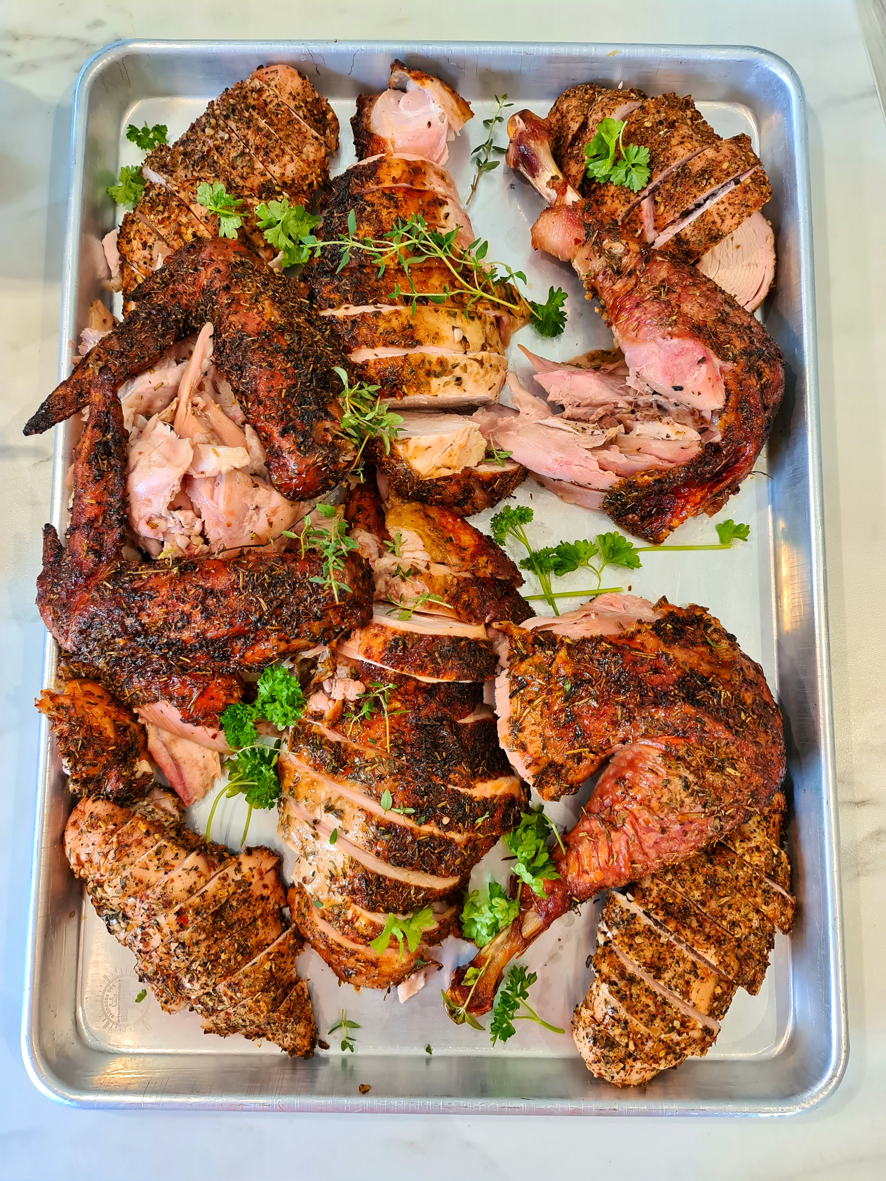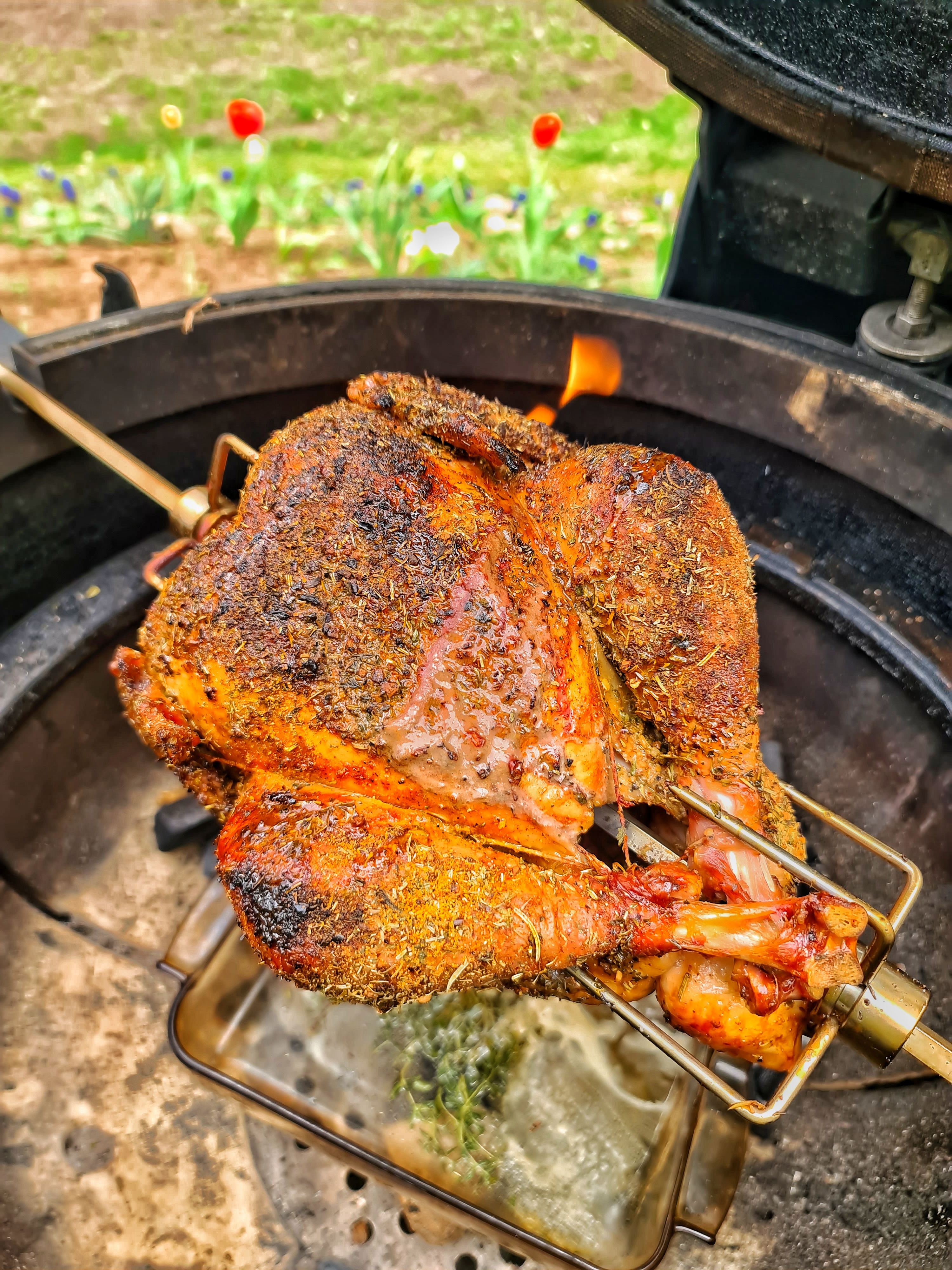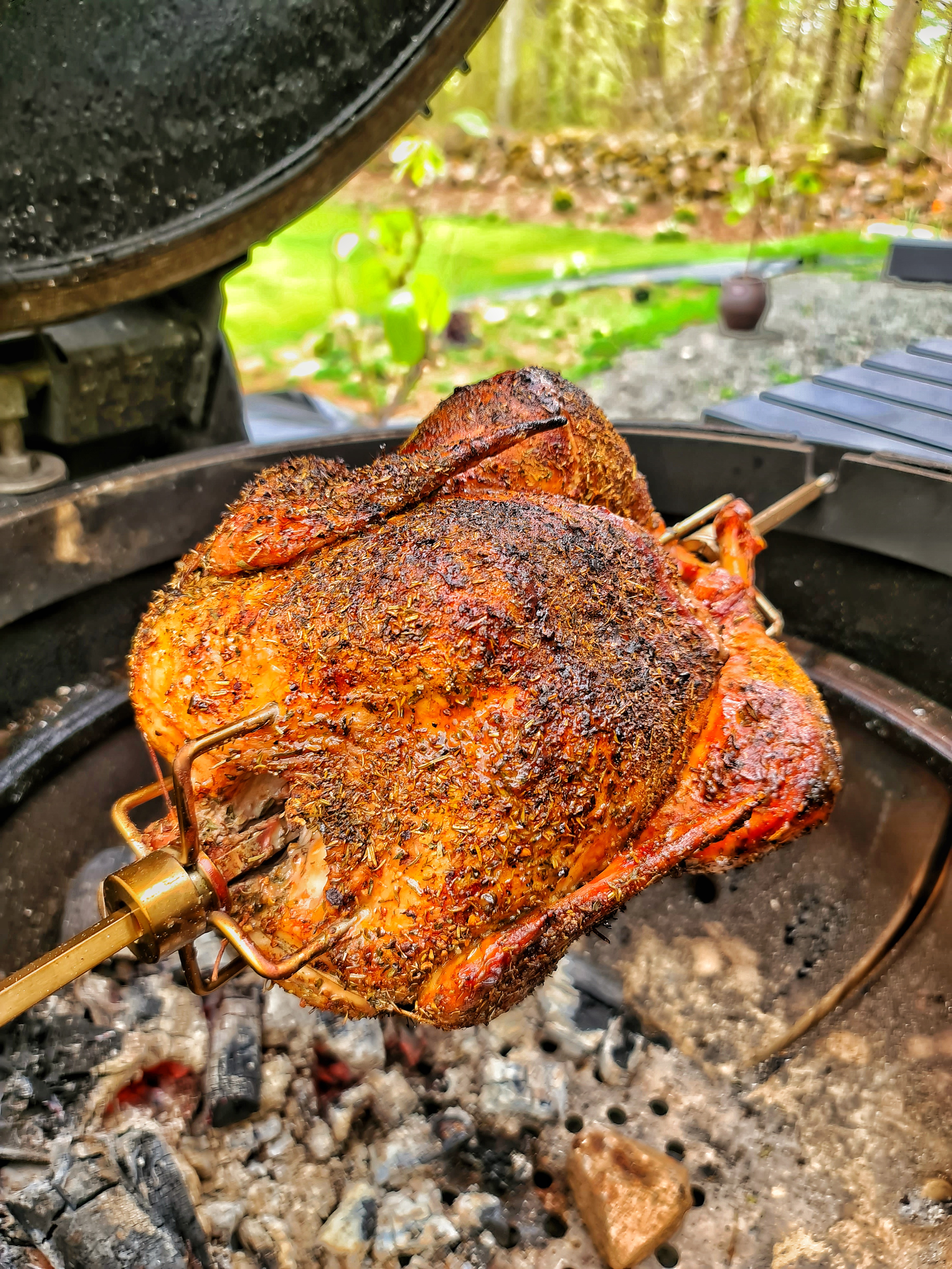 4.6kg kalkon. Rubbad med Chicken Rotisserie Rub från Epic Spice och Badass Bird Boost från Big Swede.