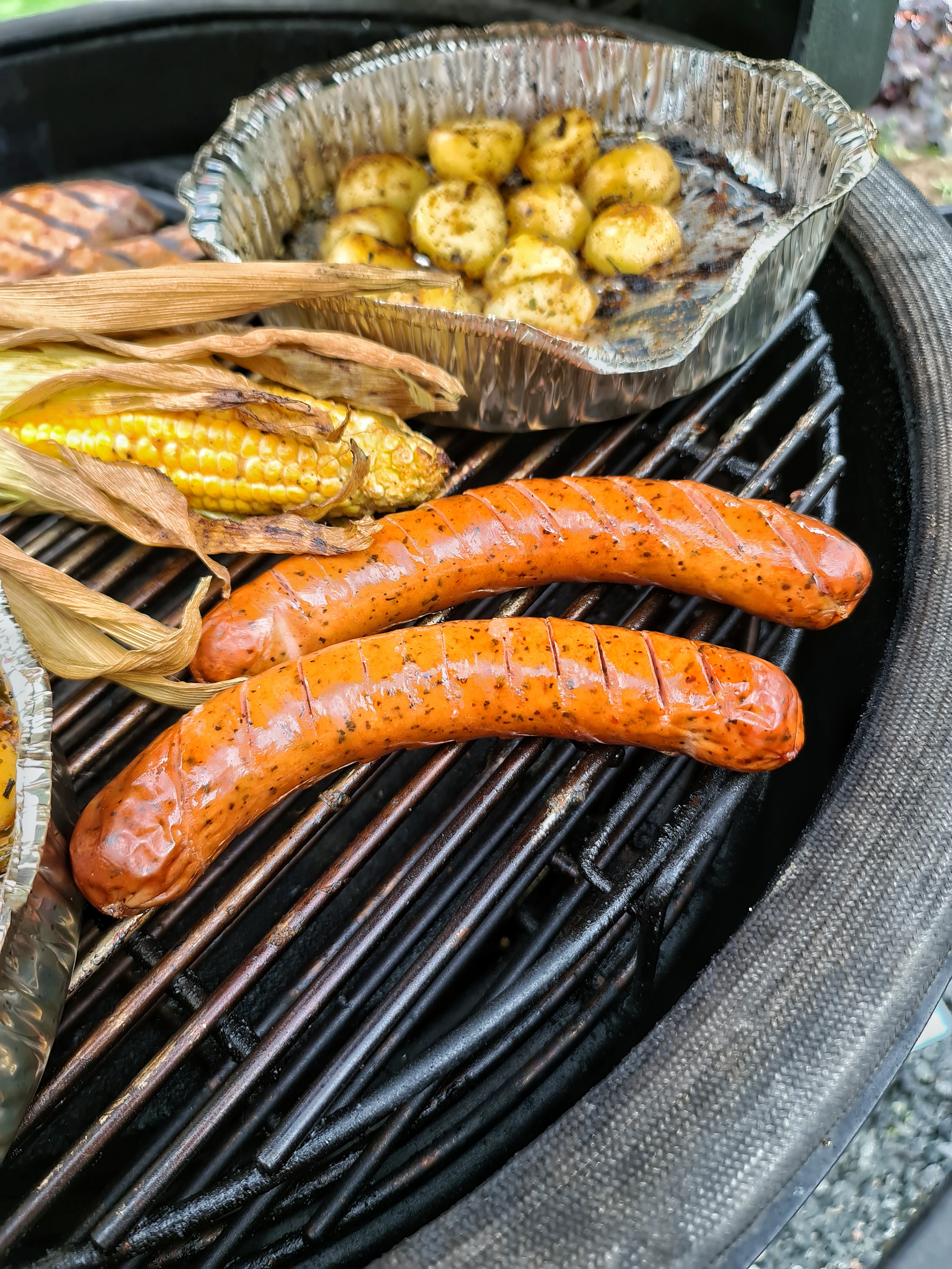 En majskolv och en heeeeelt fantastisk korv från Per i Viken – Intense Cheese med Västerbottenost och emmentaler. Galet bra!