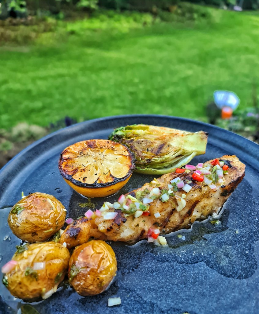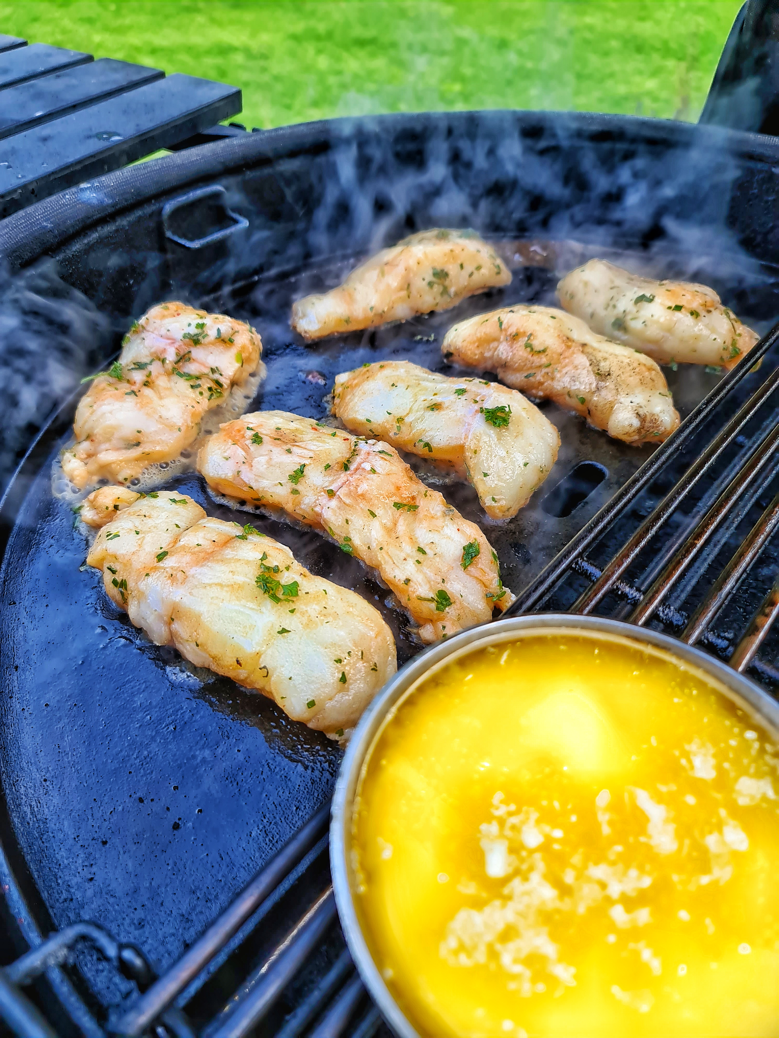 Fisken i sig släppte en del vätska såklart, så varje gång de skulle vändas fick de mellanlanda på hett galler på Junior medans stekplattan skrapades torr. Kanske inte helt nödvändigt med det kändes bra.