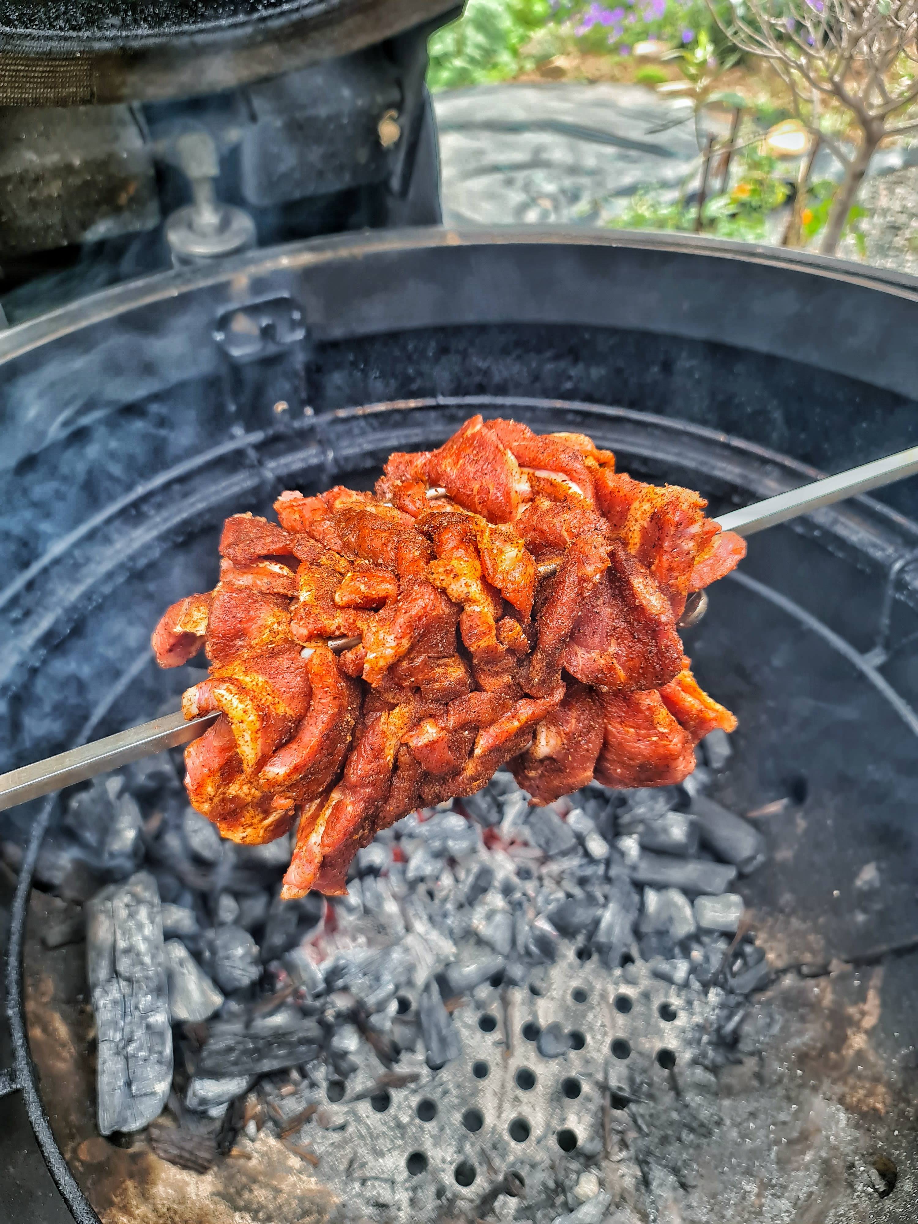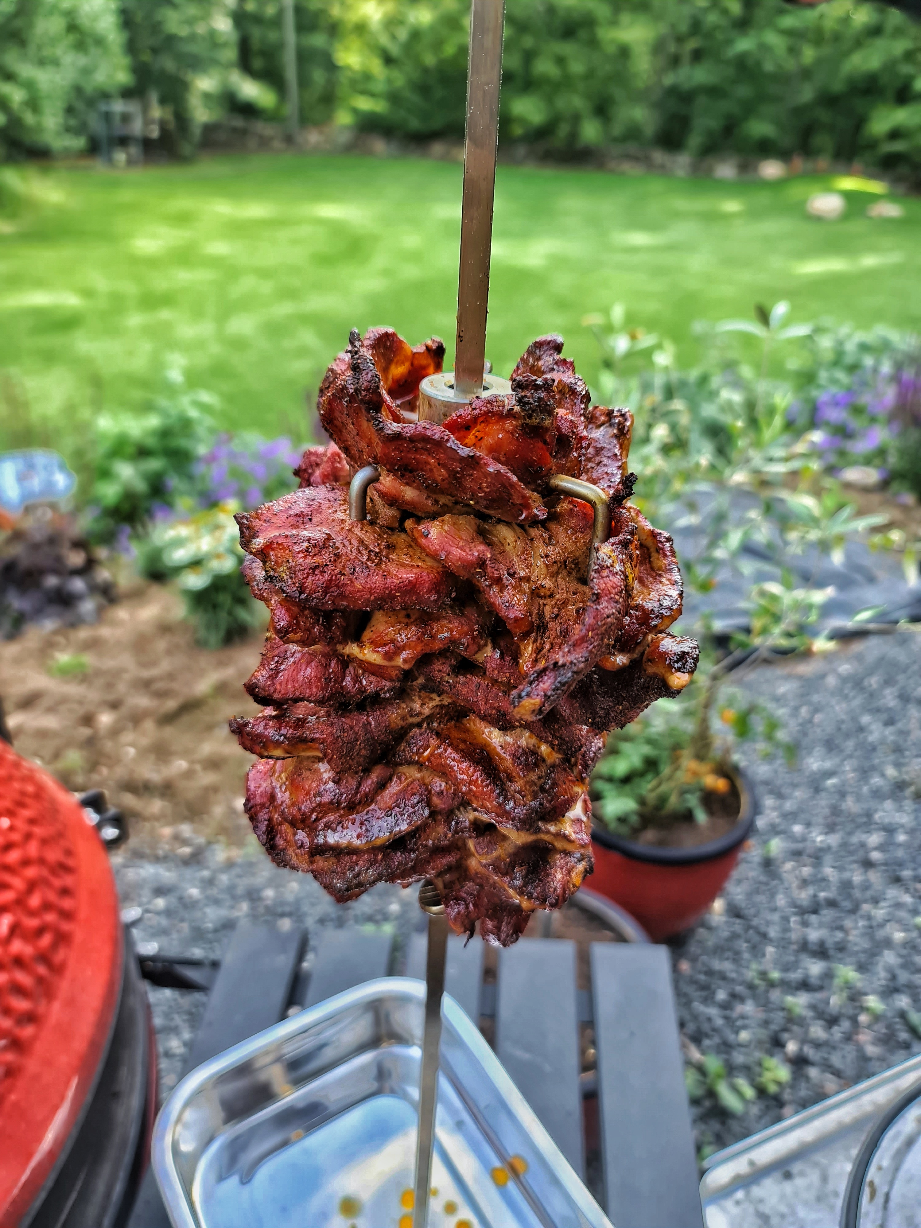 Gyros i egenbakade pitabröd. Grillade på rotisserie. Köttet kryddat med Caramba från Lagrito’s. Förbaskat gott rent ut sant.