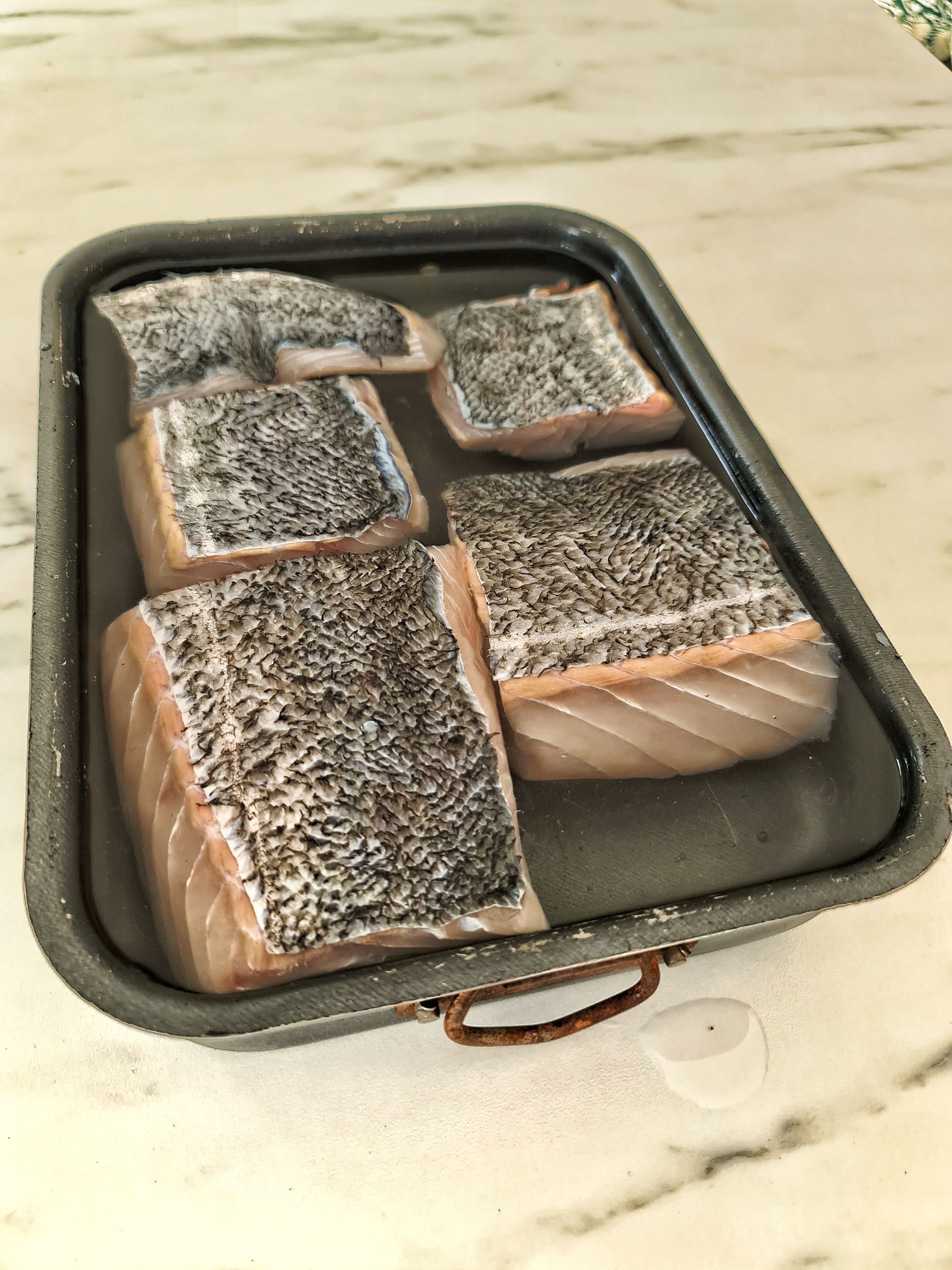 Sejryggen rimmades först under ca en timme med en 10% saltlag.