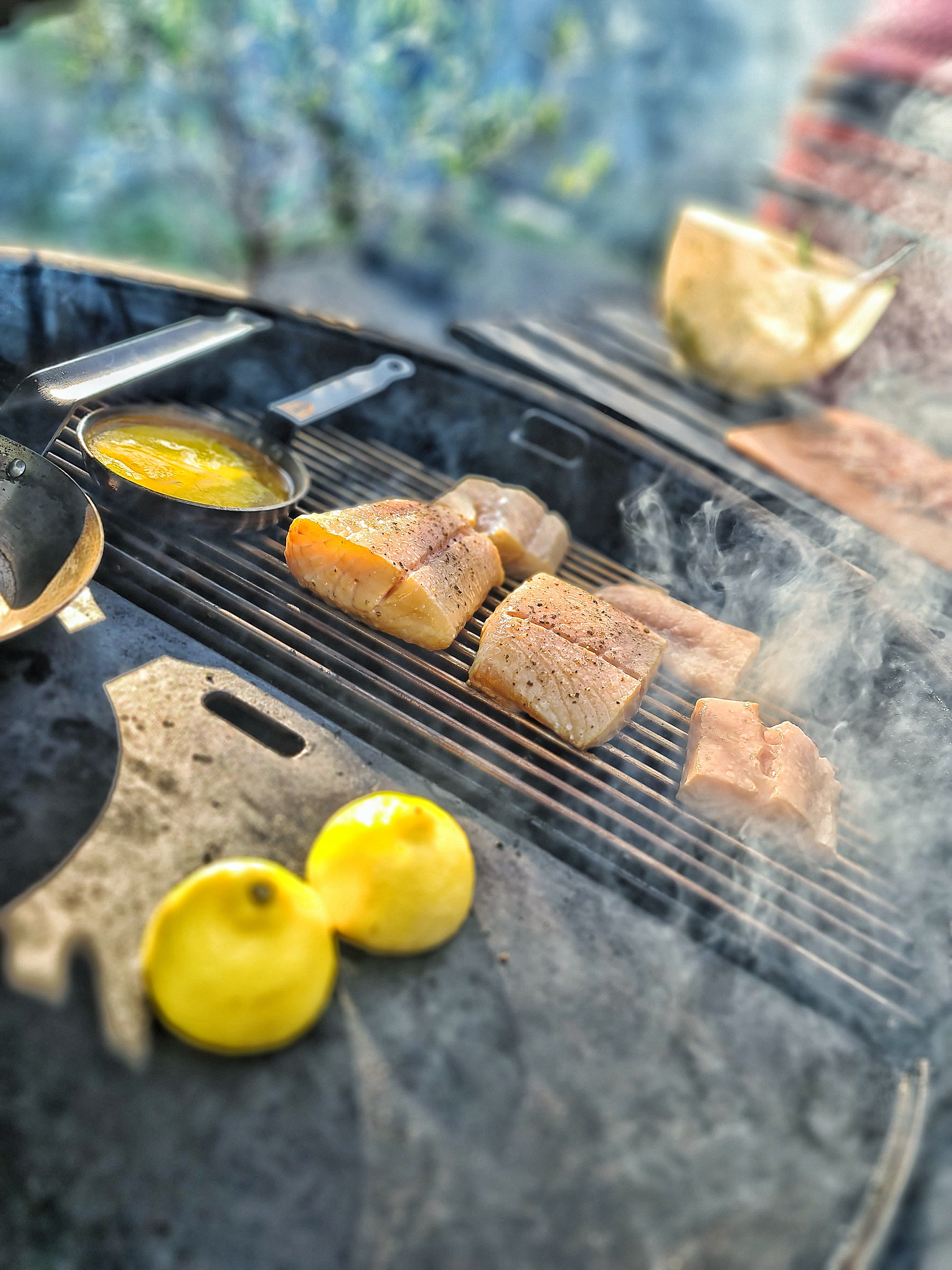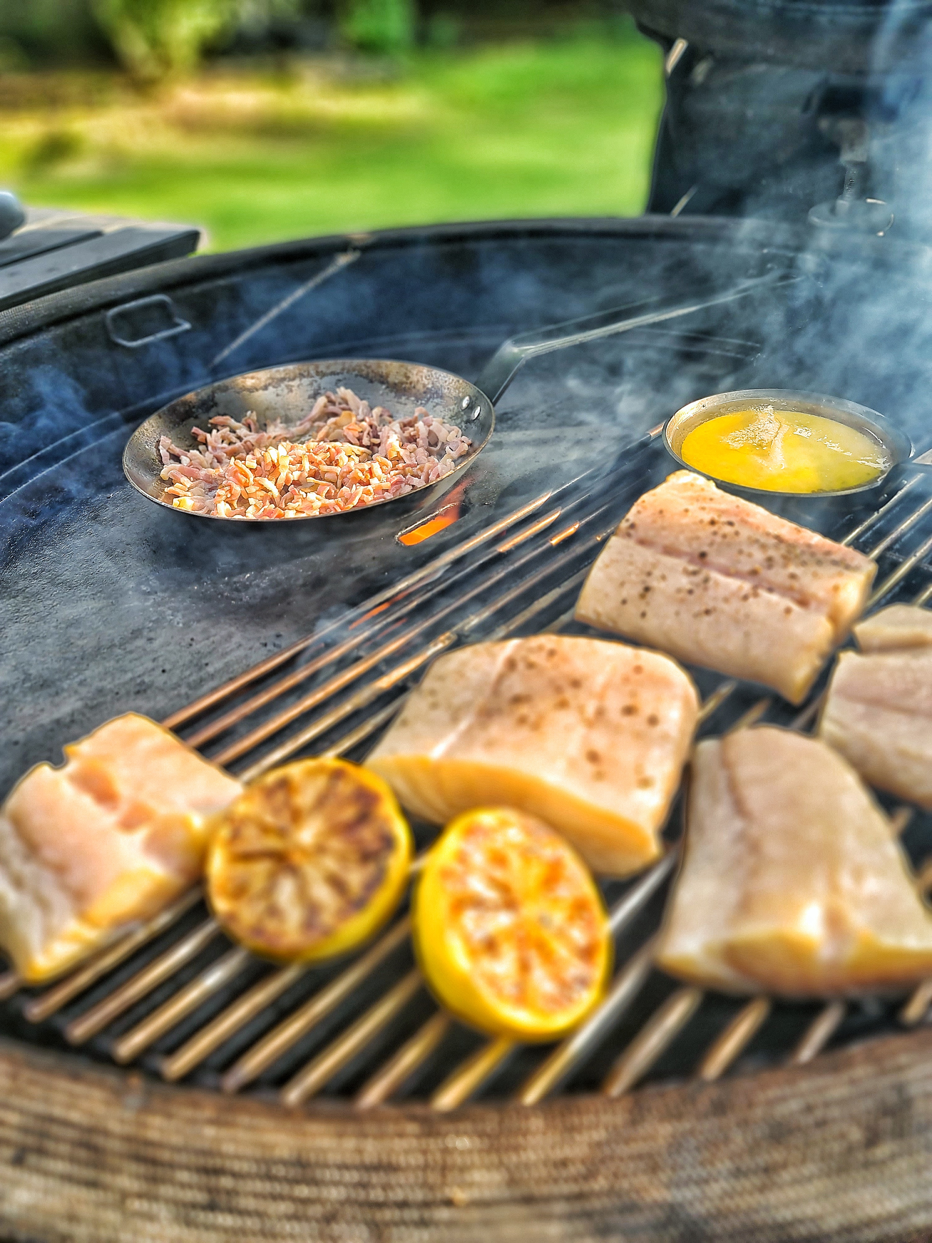 Därefter röktes lite smör och fisken en stund med körsbärsflis och lite pellets smaksatt med lite olika örter.