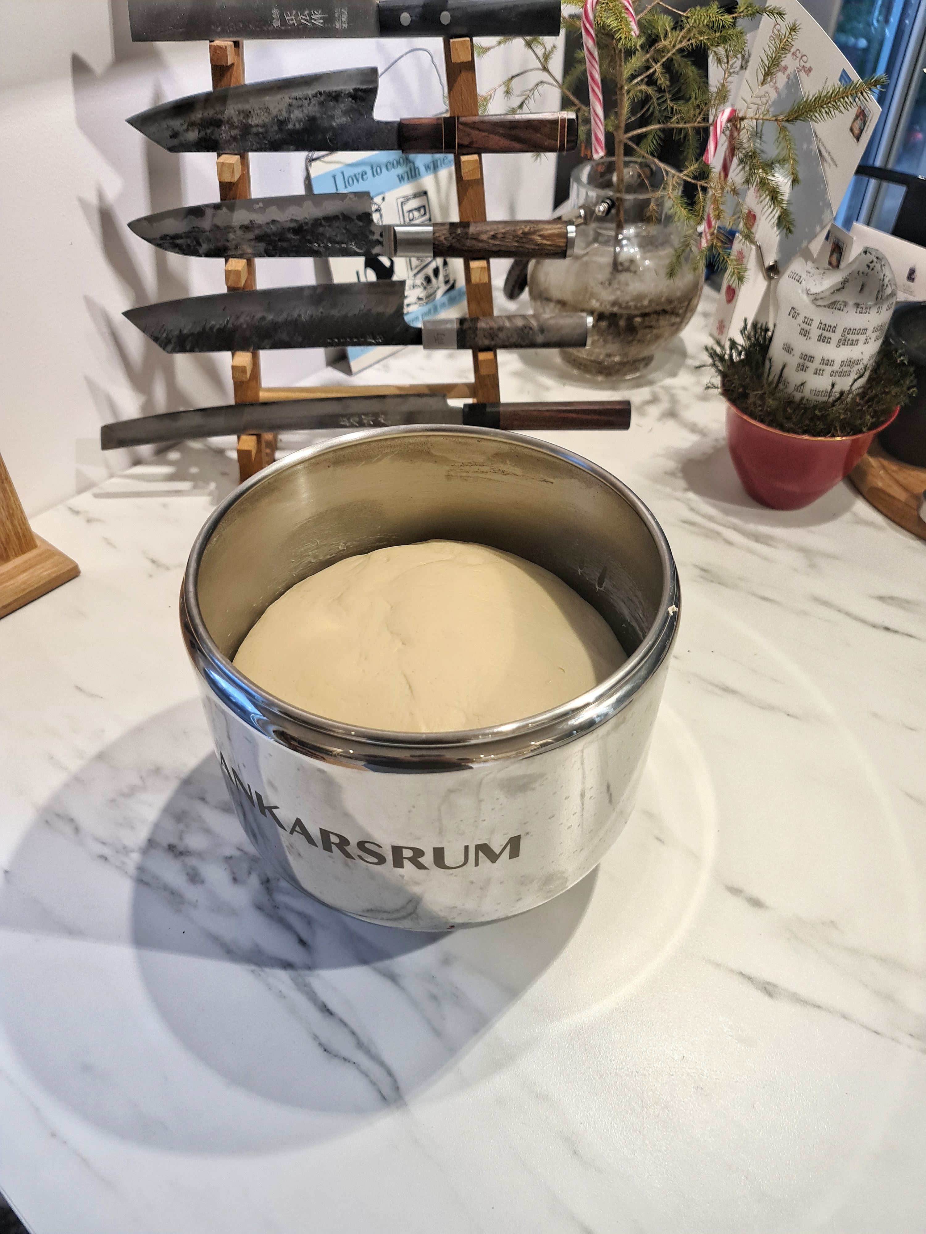 - Låt degen jäsa under minst en timme. Täck bunken med plastfolie under tiden.