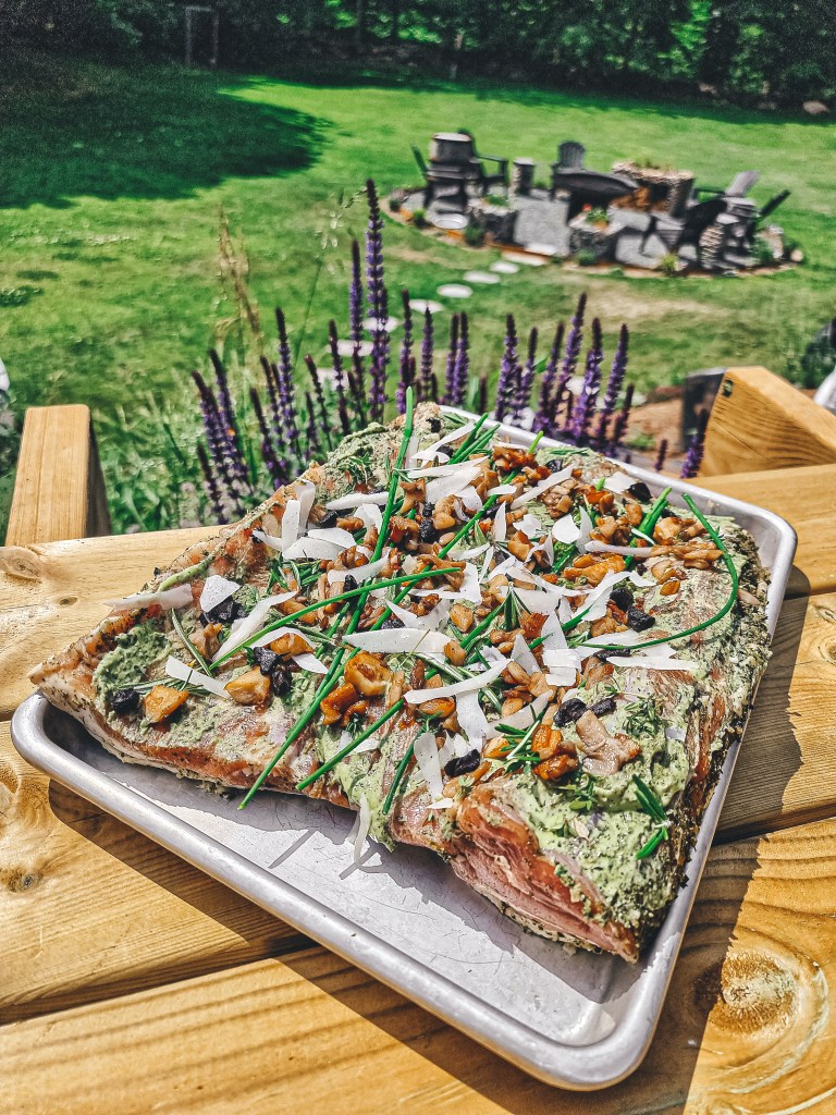 På utsidan blir det ett lager av den grymma Parsaillade (med bland annat vitlök, örter och salt) från Borgeby Kryddgård tillsammans med några rosmarinkvistar.