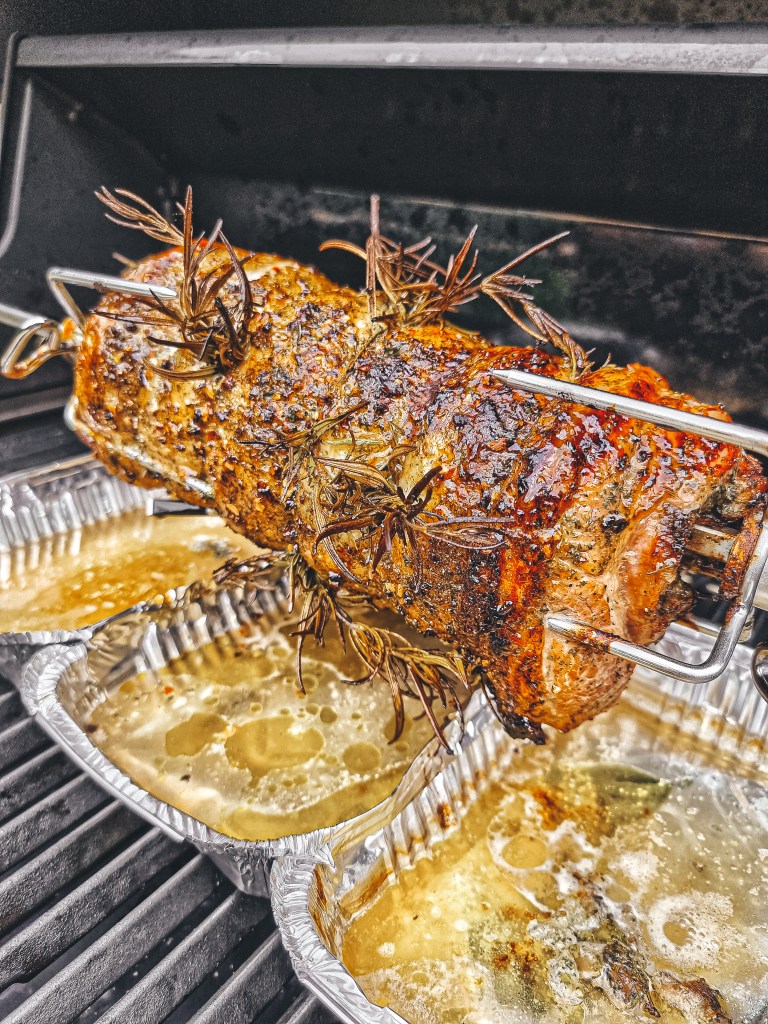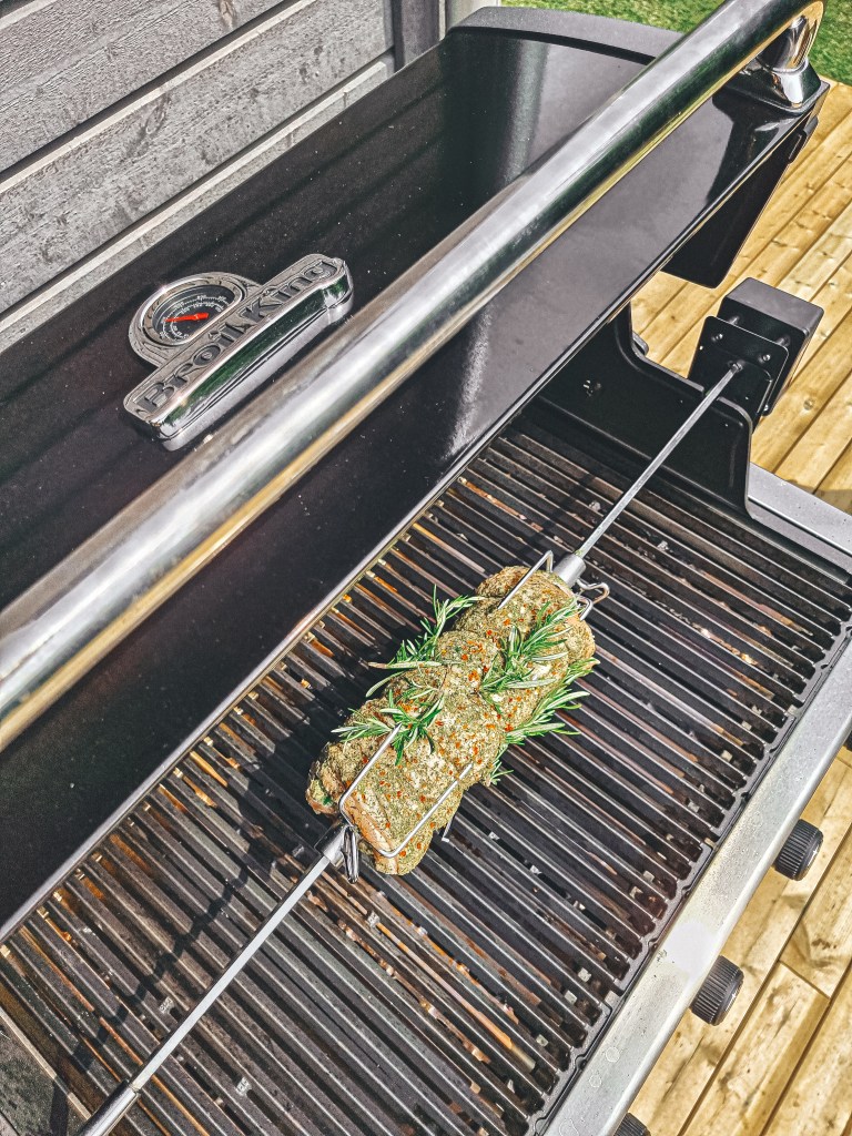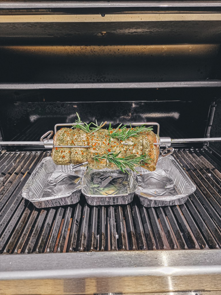 Målbilden var en grilltemp på ca 150 grader och rotisseri på gasolgrillen. Tidsåtgång ca drygt 3,5h tills jag nådde en innertemp av ca 92 grader efter vila. De tre mittersta brännarna igång på mellanvärme medans de yttre är helt avstängda.